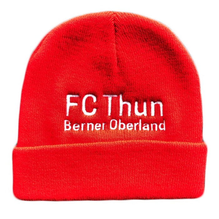 Der FC Thun-Schriftzug ziert die Vorderseite der Wintermütze, während die Mütze im FC Thun-Rot erstrahlt. Für unsere kleinen Fans gibt es eine Einheitsgrösse.